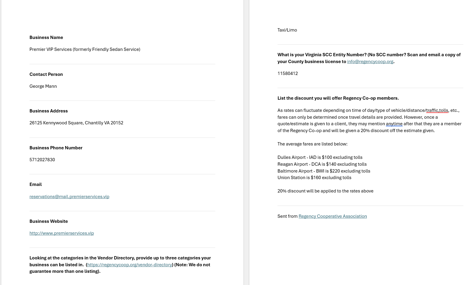 Premier VIP’s service agreement and discount offered to paid members of the Regency Co-op can be found here.