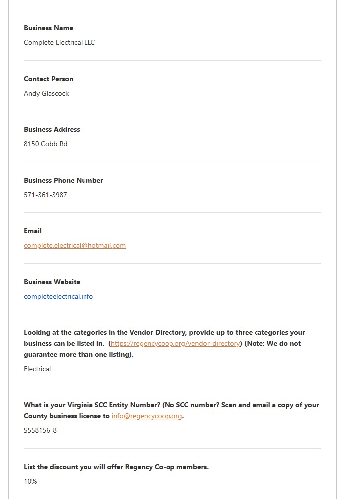 Complete Electrical, LLC service agreement and discount offered to paid Regency Co-op members can be found here.